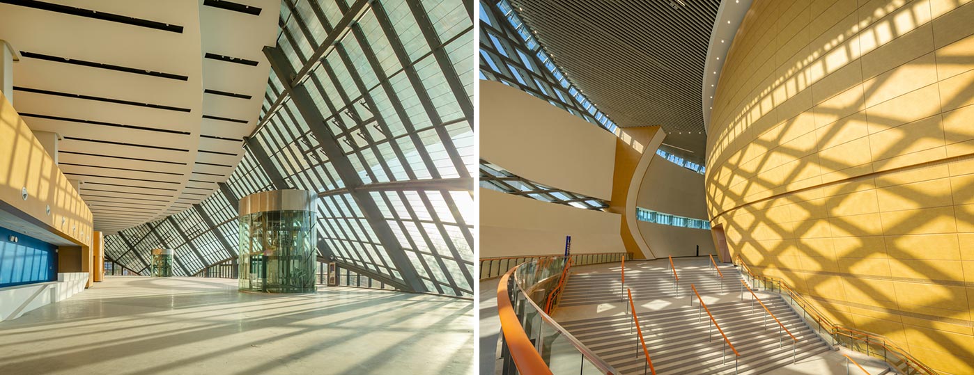 美国ATS公司(Archi-Tectonics NYC, LLC)中标了看法性设计计划,威尼斯wns885566四分公司承接了该项目的精装修工程,装饰面积共约3.5万㎡,主要包括游客服务中心、曲棍球场、下穿地下广场、全民健身中心、体育馆五个主要修建。杭州运河亚运公园绿草如茵,清水围绕,具有杭州特色的符号:玉琮、陶器、湖光山色、绿色生态贯串整场,融入修建设计,抵达室内外协调统一,公园里一南一北两座体育场馆,南是一把非遗的“油纸伞”,一块放大版的“玉琮”,见证了这座都会的岁月变迁。