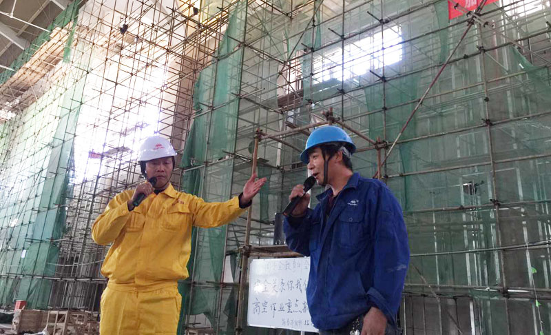 昆明国际会展中心55000平方的体量,工期却只有短短的100天,工期紧、使命重,而抢工时代的清静文明事情更是施工全的主要使命。这个神圣的使命牵动着指挥部清静主管刘才足的心,他周密安排各项妄想,其中最主要的就是做好工人的清静教育,防患于未然,而这悦耳的旋律也是会展中心清静教育现场的主要组成部分。