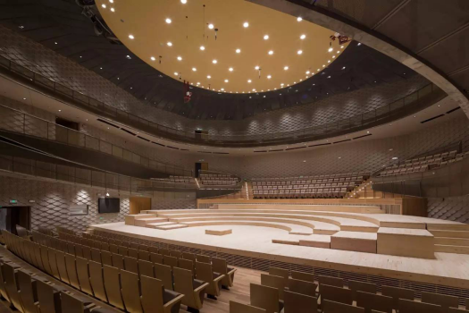 ÓÉÓÚÕâÀïÊÇËÕÖݽ»ÏìÀÖÍŵÄפµØ£¬Ë¼Á¿µ½Ê¹ÓÃÐèÇó£¬Éè¼ÆÊ¦ÒªÇóÀÖÍÅÅÅÑÝʱ¿Õ³¡µÄÉùЧÓëÑݳöʱÂú×ùµÄÉùЧÐè¼á³ÖÒ»Ö£¬Ðþ»ú¾ÍÔÚÕâÏÖ³¡510ÕÅ×ùÒεÄÉùÒô·´ÉäÉÏ¡£ÏîÄ¿²¿ÌØÒâѰÕÒ¹©Ó¦É̶¨ÖÆÁË×ùÒΣ¬Ä£ÄâÌýÖÚÉíÌ幨ÓÚÉùÒôµÄÎüÊÕ¡£¾ÓÉÇ廪´óѧÇéÐοØÖÆÖÐÐļì²â£¬ÒôÀÖÌüÎÞÈËʱƽ¾ùÎüÉùϵÊýΪ0.69£¬Âú×ùʱƽ¾ùÎüÉùϵÊýΪ0.74£¬»ú¹¹¸ø³öµÄ½áÂÛÊÇ£¬Îó²î¿ÉºöÂÔ²»¼Æ¡£